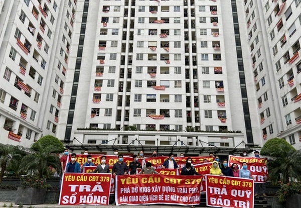 Theo phản ánh của Ban quản trị, Công ty TNHH Phát triển đô thị và xây dựng 379 đã vi phạm hợp đồng, chây ì bàn giao quỹ bảo trì và sổ hồng cho cư dân.