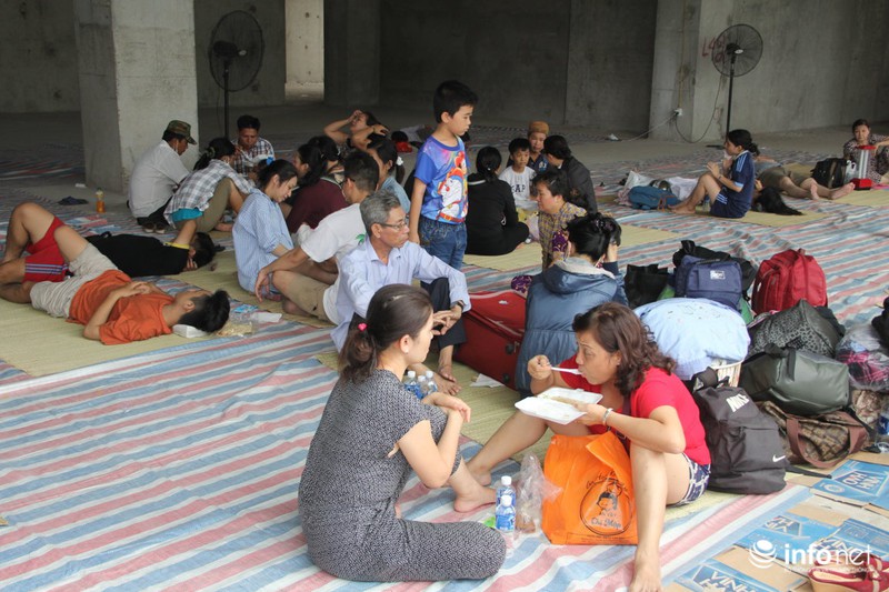 Hiện trường đang được lực lượng chức năng phong tỏa nên các hộ dân vẫn đang sống cảnh vạ vật khắp nơi trong khuôn viên khu chung cư