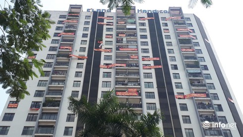 Quá bức xúc trước lý do Công ty C’Land đưa ra do cư dân “nợ phí” để cắt nước sinh hoạt, ảnh hưởng đến cuộc sống nên nhiều cư dân đã treo băng rôn quanh nhà mình để phản đối hành động của chủ đầu tư.