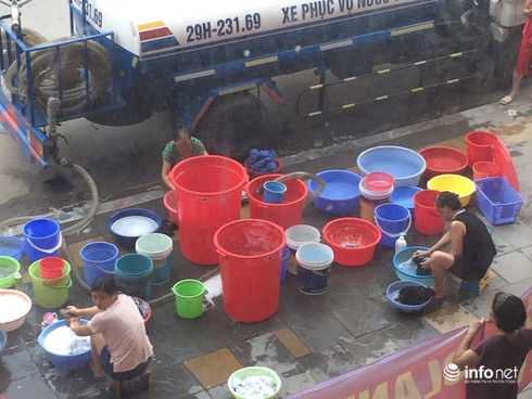 Cực chẳng đã, hiện tại nhiều hộ dân tại chung cư không có nước sinh hoạt nên họ đã phải cùng nhau bỏ tiền ra mua các xe téc nước bên ngoài về sử dụng. Vì thế, việc giặt quần áo được thực hiện ngay tại chân tòa chung cư này.
