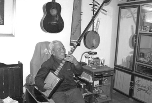 Cụ Ngô Trọng Bình bên cây đàn đáy. (Ảnh: Tư liệu) |
