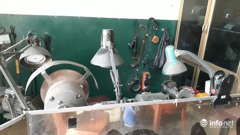 Do tuổi cao sức yếu, cụ đã truyền nghề mài tông đơ, dao kéo cắt tóc cho con trai ngay tại nhà. |
