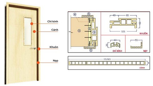 Cửa gỗ Composite Eurowindow có thiết kế tiêu chuẩn 830mm*2400mm, tuy nhiên khách hàng có thể lựa chọn thêm các chiều cao khác với những đơn hàng lớn. |