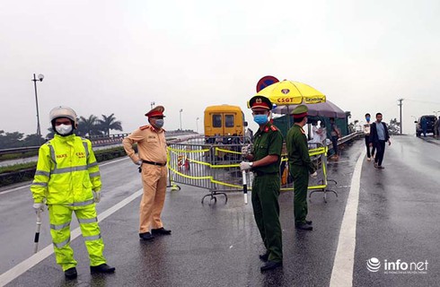 Lực lượng chức năng kiểm tra phòng dịch trên cao tốc Pháp Vân - Cầu Giẽ. |