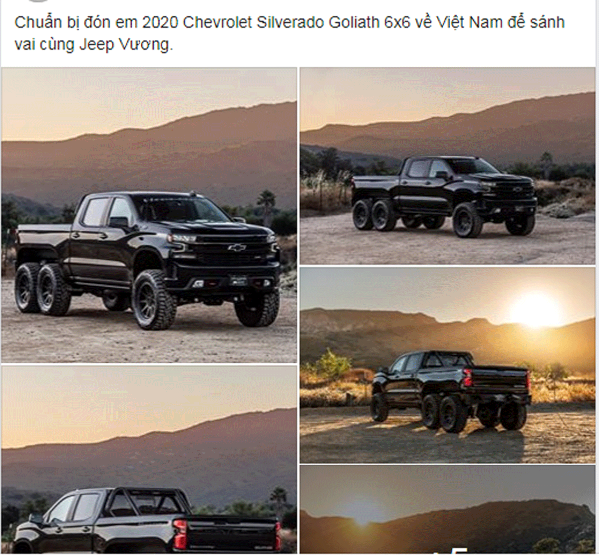 Mới đây, trên trang Facebook cá nhân, ông Lâm Tấn Lợi (Giám đốc Công ty TNHH sản xuất Duy Lợi, ông chủ của mặt hàng nổi tiếng Võng xếp Duy Lợi) chia sẻ thông tin sắp đón mẫu siêu bán tải cực khủng Hennessey Chevrolet Colorado Goliath 6x6 với dẫn động 6 bánh 3 cầu về Việt Nam.