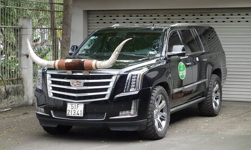 Ngoài ra, ông chủ võng xếp Duy Lợi còn sở hữu một chiếc Cadillac Escalade ESV gắn theo chiếc sừng lớn dài hơn cả chiều rộng thân xe, có mũi sừng nhọn hoắt phía trước. Chiếc xe này là phiên bản sản xuất năm 2016 và chưa phải bản cao cấp Platinum, nên giá thị trường khoảng hơn 5 tỷ đồng. So với những chiếc sừng trước đây thì bộ sừng mới gắn trên Cadillac Escalade ESV bự hơn hẳn, kết hợp cùng bộ lốp địa hình gai lớn của Toyo tạo nên vóng dáng như một con bò tót chiến đấu khổng lồ.