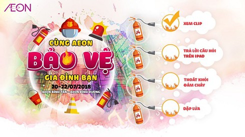Chương trình được triển khai thí điểm từ ngày 20 đến 22/7/2018 tại 2 Trung tâm mua sắm AEON Bình Tân và AEON Bình Dương với rất nhiều hoạt động thiết thực. Khách hàng sẽ được tham gia các trò chơi liên quan đến phòng cháy chữa cháy, nâng cao nhận thức để phòng ngừa và xử lý khi có cháy xảy ra. Đặc biệt, chương trình có hoạt động thực tế giúp các em thiếu nhi nhận biết về sự nguy hiểm và các thiệt hại khi xảy ra cháy và các em sẽ được tham gia các trò chơi vận động nhằm rèn luyện kỹ năng phòng cháy chữa cháy cho bản thân. Sau khi hoàn thành các trò chơi, khách hàng sẽ được nhận phần quà nhỏ thiết thực từ chương trình. Mặt khác, tại chương trình bày bán các sản phẩm về phòng cháy, chữa cháy giúp khách hàng trang bị cho ngôi nhà nhỏ của mình trở nên an toàn hơn.