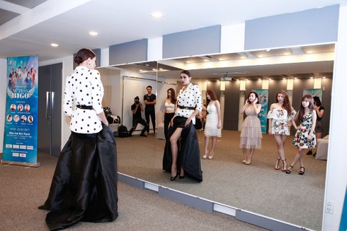 Ngoài vai trò giám khảo trong đêm chung kết, siêu mẫu Hoàng Yến còn là người hướng dẫn kỹ năng catwalk cho các thí sinh |