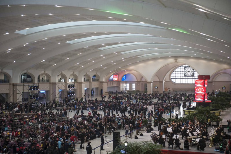 Hình ảnh cho thấy những nhà ga chật cứng người cho cuộc hành trình về nhà ăn tết dịp cuối năm. |