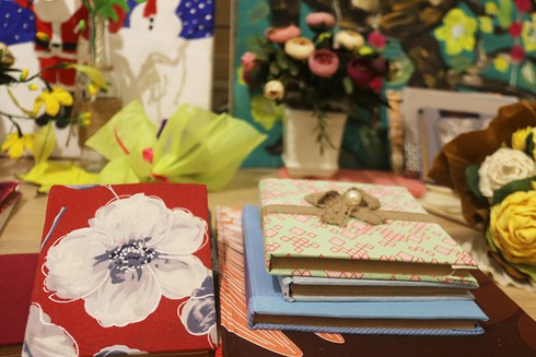 | Những cuốn sổ 'handmade' do Thúy và các em tự kỷ của trung tâm tự tay làm. Ảnh: Nguyễn Thảo |