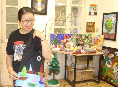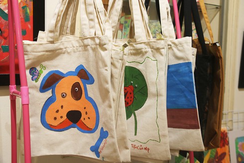 | Những chiếc túi vải do Thúy vẽ trang trí. Ảnh: Nguyễn Thảo |