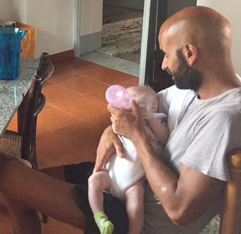 Luca Trapanese tự tay cho bé Alba uống sữa |
