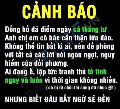 Ngày Cá tháng Tư là ngày mà người ta được nói dối hay bày ra những trò đùa hài hước mang lại tiếng cười sảng khoái. Bộ ảnh chế đầy hài hước ngày Cá tháng 4 này cũng góp phần cho ngày 1/4 của bạn thêm thú vị hơn rất nhiều.