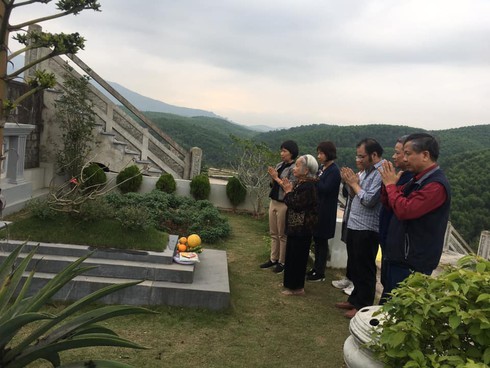 Đại gia đình ông Xuyên cùng nhau đến tảo mộ chiều chủ nhật dịp gần Tết. |