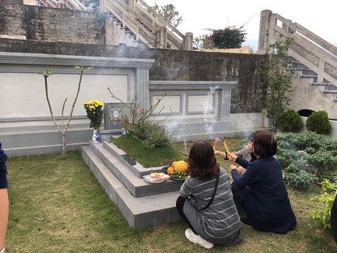 Gia đình cô Nhã (trú tại phố Nguyễn Khang, quận Cầu Giấy, Hà Nội) cũng tranh thủ ngày nghỉ cuối tuần lên thăm phần mộ của tổ tiên. Cô Nhã chia sẻ, vợ chồng cô cùng đi lên thắp hương mời bố mẹ cô Nhã đã qua đời về ăn Tết cùng con cháu, đồng thời tranh thủ dọn dẹp mộ phần. Cô Nhã mua cả cây quất mang từ Hà Nội lên nghĩa trang Lạc Hồng Viên để trang trí phần mộ. Cô Nhã kể, trước kia gia đình cô phải gửi tro cốt ở nghĩa trang Văn Điển, hàng năm vào các dịp lễ tết truyền thống, cô vẫn đến tảo mộ nhưng chỉ hương khói mà không thể chăm sóc dọn cỏ, trồng cây, cắm hoa như hiện nay. Gia đình cô đã mua 20m2 đất nghĩa trang để đưa người thân về yên nghỉ.