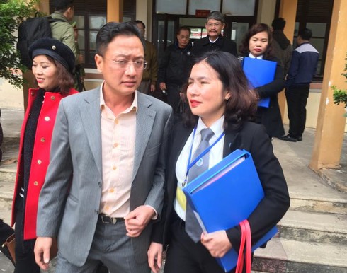 Bị cáo Đỗ Anh Tuấn (Giám đốc Công ty Thiên Sơn) và luật sư Nguyễn Thị Đinh Hương. |