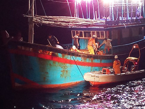 Trong khi đó, biển động mạnh do chịu ảnh hưởng của gió mùa Đông Bắc, tàu di chuyển chậm nên thuyền trưởng yêu cầu cứu nạn khẩn cấp. Trước tình hình tính mạng của ngư dân đang bị đe dọa từng giờ, Trung tâm Phối hợp tìm kiếm cứu nạn hàng hải Việt Nam đã điều động tàu SAR412 vượt sóng dữ đi cứu nạn lúc 17h chiều 8/1, cùng đi có ê kíp bác sĩ của Trung tâm Cấp cứu y tế TP Đà Nẵng.