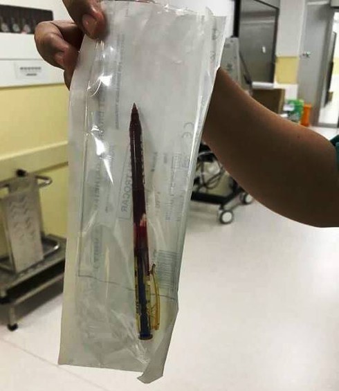 Ngay lập tức, các bác sĩ đã phẫu thuật rút cây bút ra và khâu vết thương.