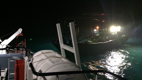 Tàu cứu hộ tiếp cận các ngư dân. |