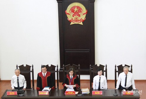 Hội đồng xét xử phiên tòa sơ thẩm vụ án xảy ra tại Bảo hiểm xã hội Việt Nam. |