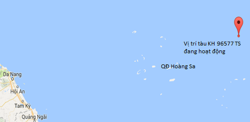 Hiện tàu đang hoạt động đánh bắt ở vị trí có tọa độ 17°00'00N 114°20'00E, cách Đà Nẵng khoảng 347 hải lý về hướng Tây Bắc.