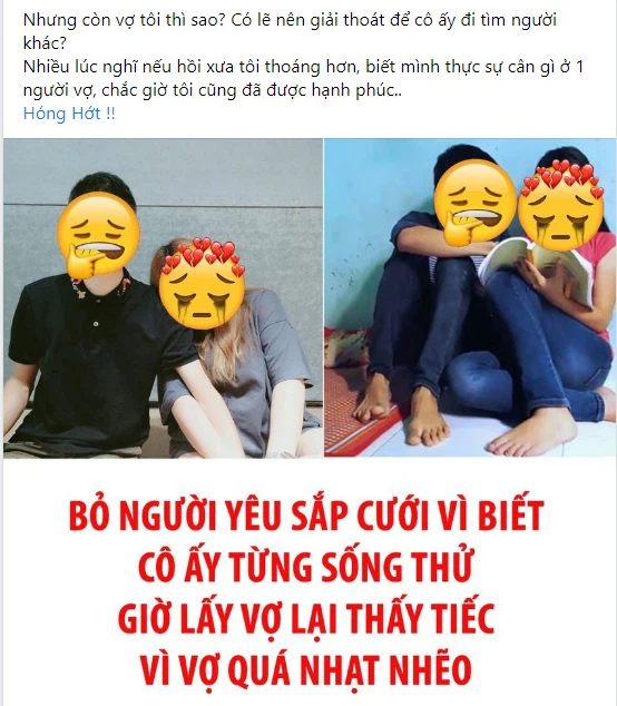 Nhưng còn vợ tôi thì sao? Có lẽ nên giải thoát để cô ấy đi tìm người khác? Nhiều lúc nghĩ nếu hồi xưa tôi thoáng hơn, biết mình thực sự cân gì ở 1 người vợ, chắc giờ tôi cũng đã được hạnh phúc".