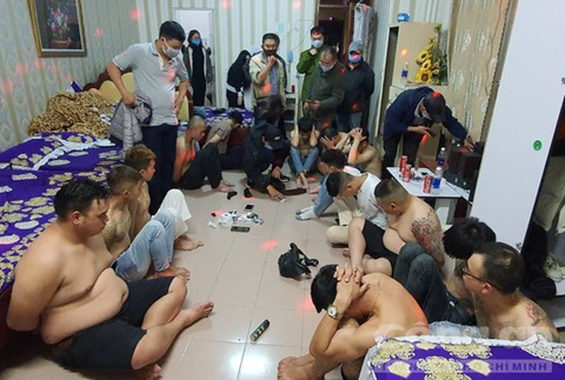 Tại phòng 305, công an bắt giữ 7 đối tượng, thu giữ 1 gói ma túy Ketamine và 1 viên "kẹo" thuốc lắc. Số thuốc này do đối tượng Nguyễn Ngọc Lợi (SN 1996, trú thị trấn Ngô Mây, huyện Phù Cát, tỉnh Bình Định) khai nhận vừa mua của 2 đối tượng khác, cả nhóm chưa kịp sử dụng.
