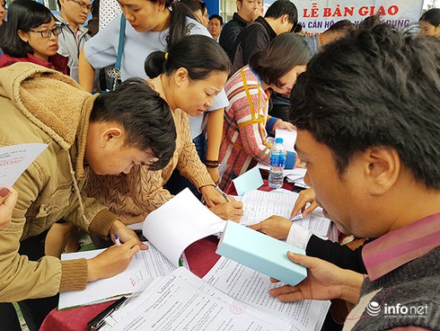 Các hộ dân ký nhận bàn giao nhà ở xã hội tại block C chung cư thu nhập thấp An Trung 2 sáng 21/01 (Ảnh: HC) |