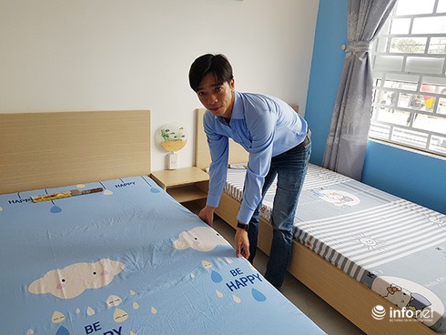 Thầy giáo Đinh Công Đức chuẩn bị căn phòng cho hai con sẵn sàng đón Tết Nguyên đán Kỷ Hợi 2019 trong căn hộ mới ở chung cư thu nhập thấp An Trung 2 (Ảnh: HC) |