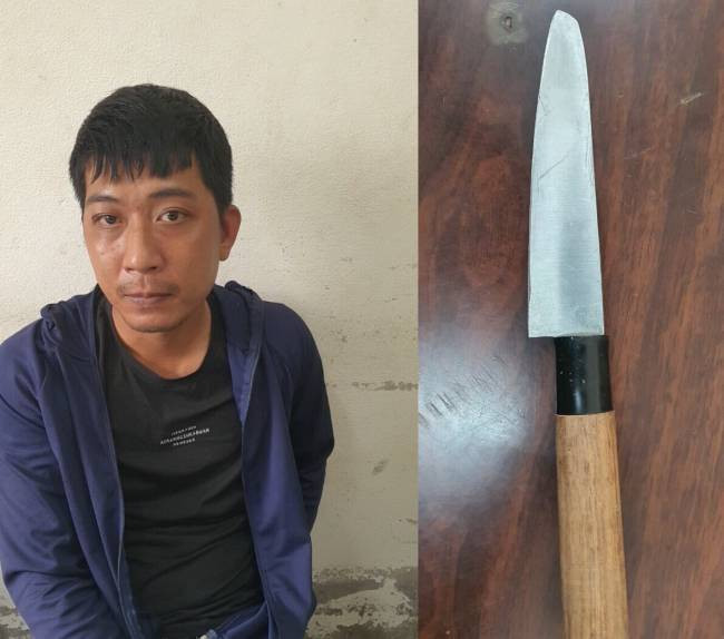 Chị Đ.T.M.D (sinh năm 1984, phường Hoà Xuân, quận Cẩm Lệ) là người bị đối tượng kề dao vào cổ khống chế cho biết: Khoảng 11h20 ngày 19/10, khi chị cùng anh L.V.T (sinh năm 1981, trú tại Đại Lộc, Quảng Nam) và chị T.T.T.T (sinh năm 1987, trú tại phường Tân Chính, quận Thanh Khê) ngồi bàn chuyện tại phòng khách văn phòng XQ Land (tổ 66, phường Hoà Quý, quận Ngũ Hành Sơn) thì bất ngờ bị một đối tượng che kín mặt xông vào dùng dao kề cổ đòi chị đưa tiền.