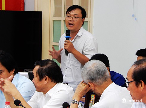 Phó Giám đốc TECCO 5 Phạm Ngọc Vinh báo cáo phương án tại hội nghị phản biện ngày 17/7... (Ảnh: HC) |