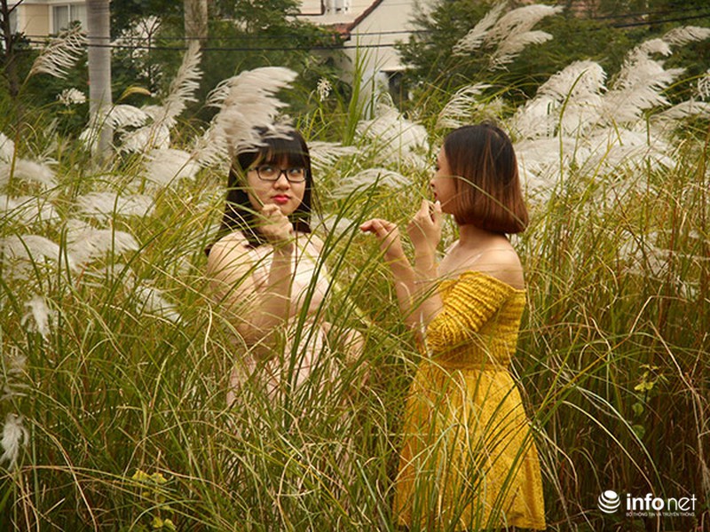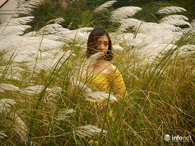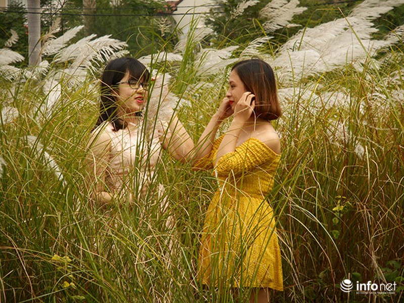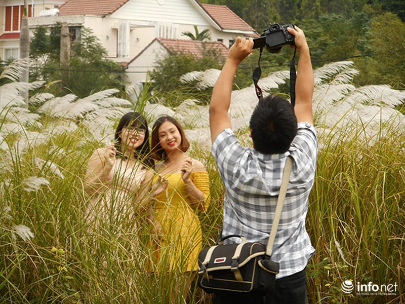 Rồi nhờ người khác chụp giúp vài tấm hình kỷ niệm với bông lau
