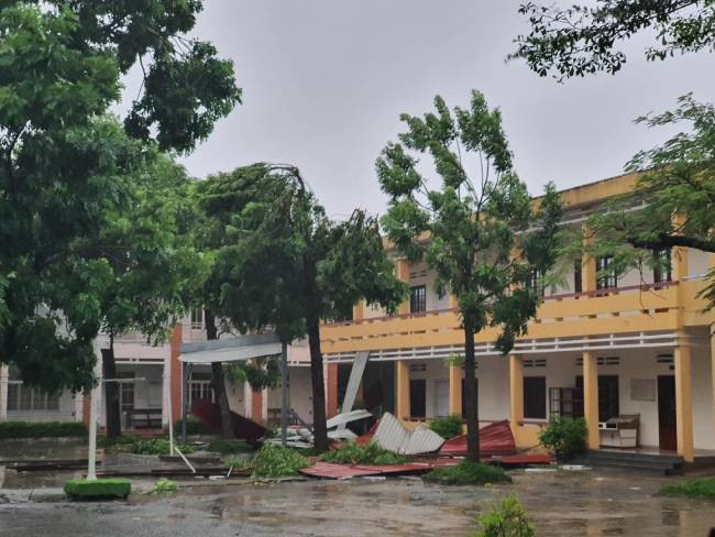 Theo báo cáo nhanh, bão Noru đã làm một số nhà bị tốc mái, nhiều cây xanh ngã đổ, một đoạn tường rào của trường học bị xô ngã.