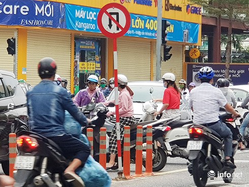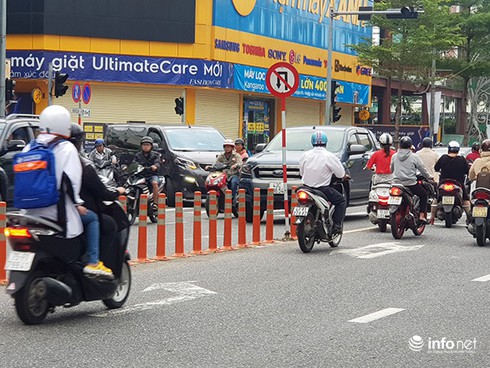 Mặc dù đã có biển báo cấm quay đầuxe trên đường tại nút Lê Duẩn - Yên Bái... (Ảnh: HC) |
