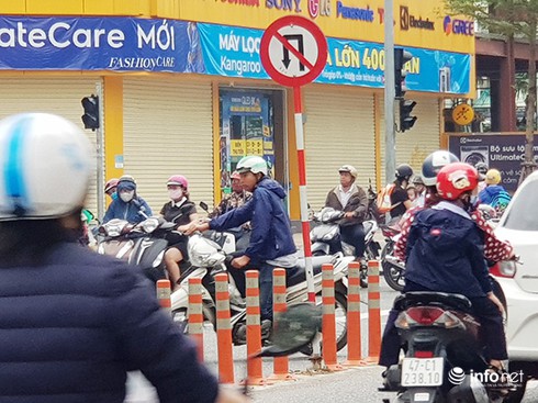 ... và rồi tương tự nhiều người cũng quay đầu xe ngay dưới biển báo cấm. |