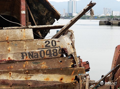 PV Infonet sang Trạm kiểm soát Biên phòng nằm ngay bên cạnh thì được Thiếu tá Nguyễn Phấn đang trực ở đây chỉ lên “hỏi UBND quận Hải Châu là rõ nhất”. Theo ông, tàu ĐNa – 0484 đã hư nát, được cẩu lên bờ và tháo hết máy móc rồi. UBND TP Đà Nẵng đã hỗ trợ xả bản và giao về cho quận Hải Châu quản lý “con tàu ma” này.