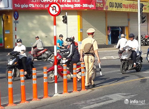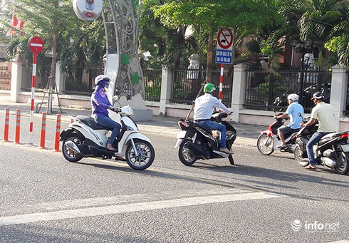 Vẫn tiếp tục có nhiều người đi xe máy quay đầu trái luật ngay giữa đường Lê Duẩn... |