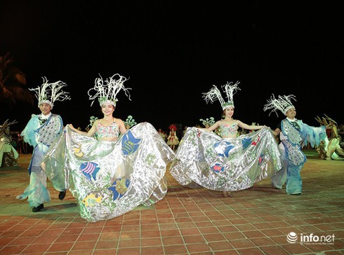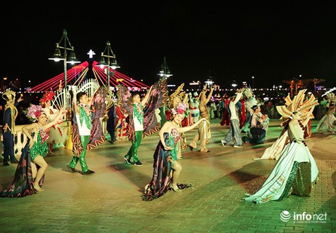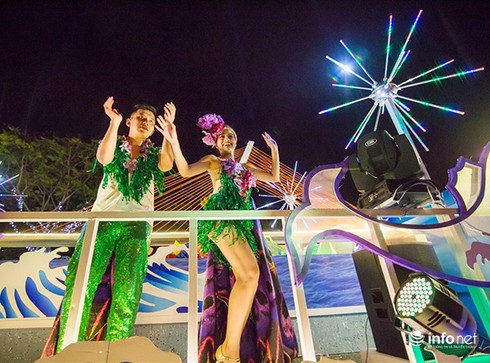 12 xe hoa được thiết kế và tạo dựng kỳ công với 48 nghệ sĩ hàng đầu của Việt Nam và quốc tế trong trang phục lộng lẫy, dưới ánh đèn led kỳ ảo và âm nhạc rộn rã đã tạo thành 12 sân khấu nhỏ sôi động, khuấy động đêm Đà Nẵng, kéo bước chân của người dân và du khách xuống phố, cùng hòa mình theo nhạc điệu và những vũ điệu đầy say mê.