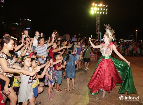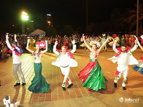 Tại hai điểm dừng chân trước trụ sở HĐND TP Đà Nẵng trên đường Bạch Đằng và Công viên Biển Đông, các vũ công đã trình diễn những tiết mục nghệ thuật đặc trưng của mỗi quốc gia. Những vũ điệu ngập tràn cảm xúc trong âm nhạc non-stop và ánh sáng kì ảo, các tiết mục flasmob độc đáo trong suốt gần nửa tiếng đồng hồ đã khiến khán giả như bị cuốn trong say mê.