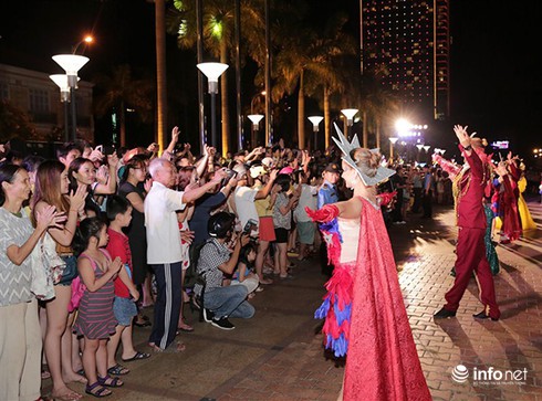 Rất đông người dân, du khách trong và ngoài nước hòa mình vào không khí sôi động củalễ diễu hành nghệ thuật Carnaval DIFF 2018