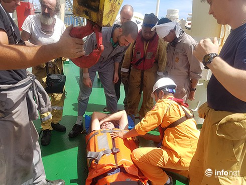 Trước tình hình cấp bách, lúc 06h50 sáng nay 10/9, được sự chỉ đạo của Cục Hàng hải Việt Nam, Trung tâm Phối hợp tìm kiếm cứu nạn hàng hải Việt Nam đã điều động tàu tìm kiếm cứu nạn chuyên dụng SAR 412 đang thường trực tại Đà Nẵng cùng êkíp bác sỹ chuyên khoa của Trung tâm Cấp cứu 115 TP Đà Nẵng khẩn cấp lên đường thực hiện nhiệm vụ.