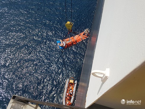 ...sau đó chuyển bệnh nhân này sang tàu SAR 412 để khẩn trương đưa vào đất liền |