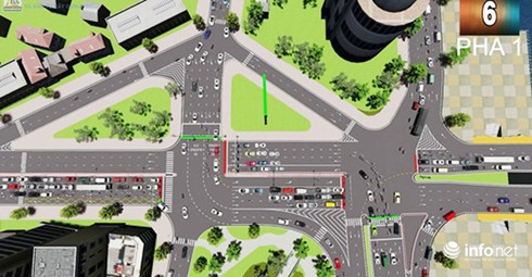 Trên tuyến đường Trần Phú, cải tạo một phần vỉa hè 2 bên đảo dẫn hướng để mở rộng mặt đường hiện trạng, tăng diện tích cho các phương tiện dừng chờ đèn trước khi vào nút; đồng thời tại sát nút (trước vạch stop) bố trí diện tích dành cho các phương tiện xe mô tô và xe thô sơ dừng (dạng vạch ô hình chữ nhật) để chờ đèn và ưu tiên thoát nút khi có tín hiệu đèn xanh.