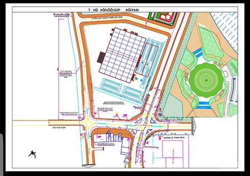 Mặt bằng tổ chức giao thông cụm nút phía Bắc cầu Hòa Xuân theo phương án 3 |