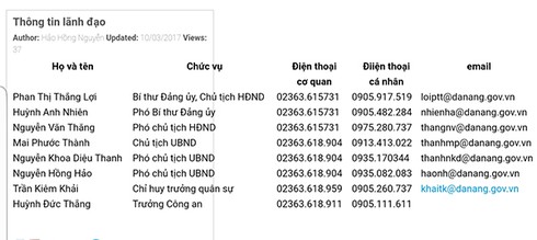 Số điện thoại của bà Nguyễn Khoa Diệu Thanh được công bố công khai trên Trang thông tin điện tử phường Hòa Thuận Đông |