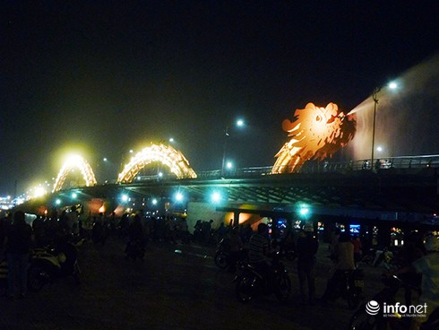 Người dân và du khách thưởng lãm cầu Rồng phun nước (Ảnh: HC) |