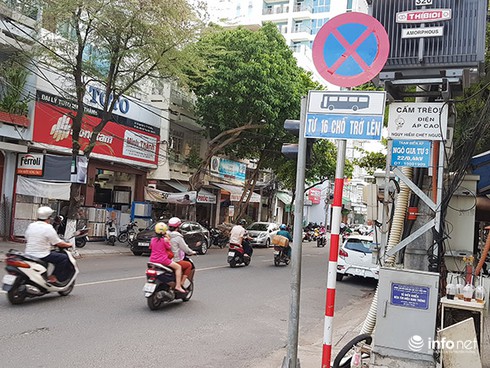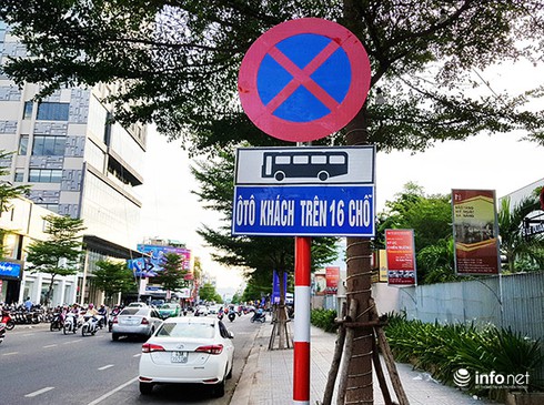 Biển báo “Cấm dừng, đỗ xe trên 16 chỗ” trước Bảo tàng Mỹ thuật Đà Nẵng trên đường Lê Duẩn... |