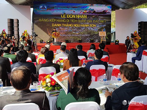 Sáng 20/01, buổi lễ đón nhận được UBND TP Đà Nẵng tổ chức trọng thể ngay dưới chân ngọn núi Thủy Sơn, thay mặt lãnh đạo Chính phủ và Bộ VHTT&DL, Thứ trưởng Bộ VHTT&DL Trịnh Thị Thủy đã trao cho Chủ tịch UBND TP Đà Nẵng Huỳnh Đức Thơ bằng xếp hạng Di tích quốc gia đặc biệt danh thắng Ngũ Hành Sơn.