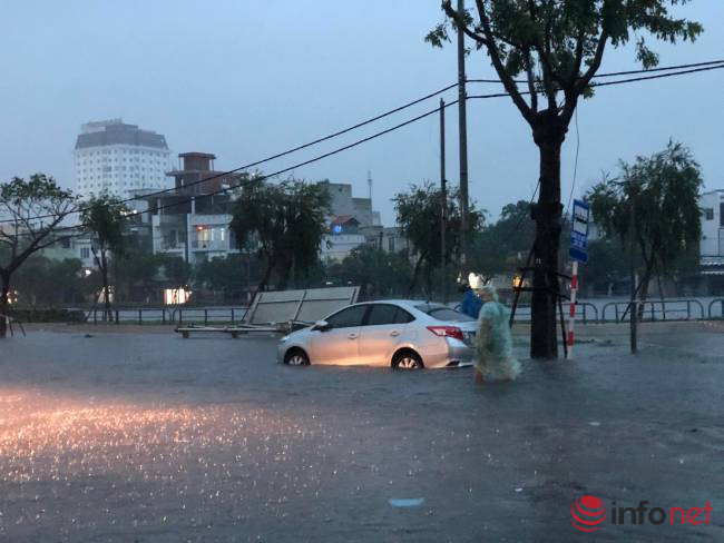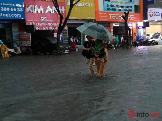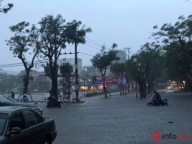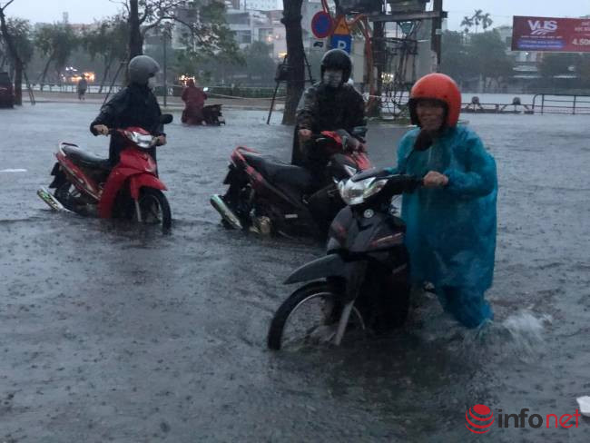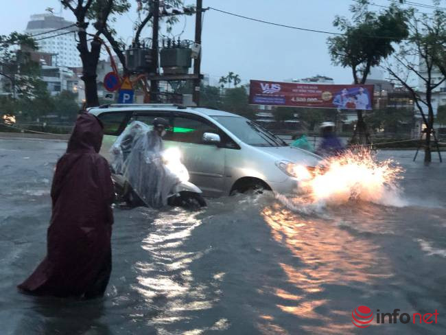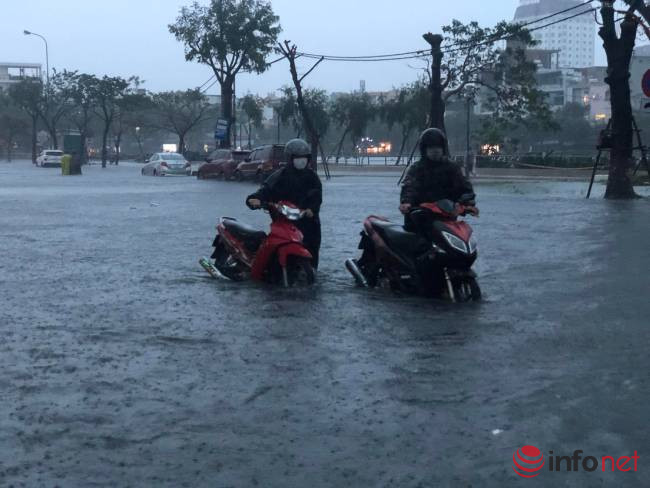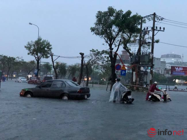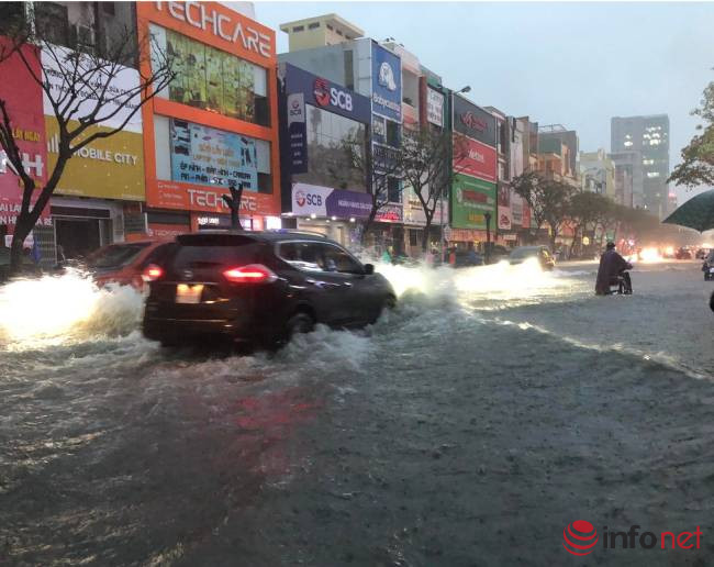 Theo ghi nhận của PV Infonet, tại đường Nguyễn Văn Linh, Hàm Nghi, Tản Đà, Văn Cao, Quang Trung… có nơi nước ngập sâu 50-60cm.