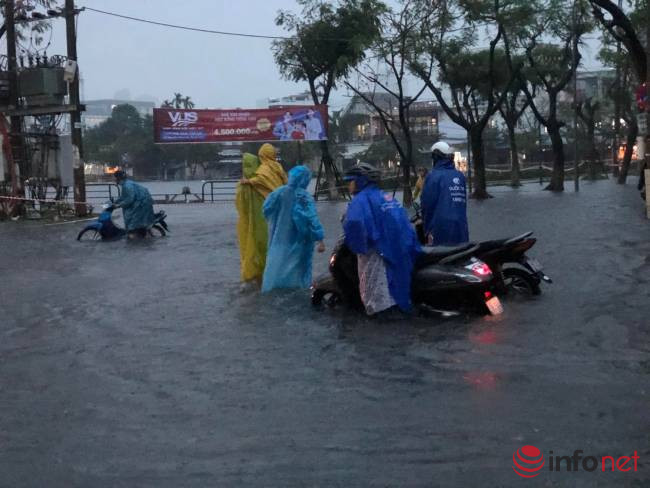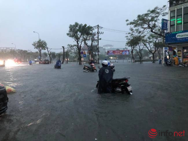 Mưa như trút nước, đường phố Đà Nẵng biến thành sông, hàng loạt xe chết máy
